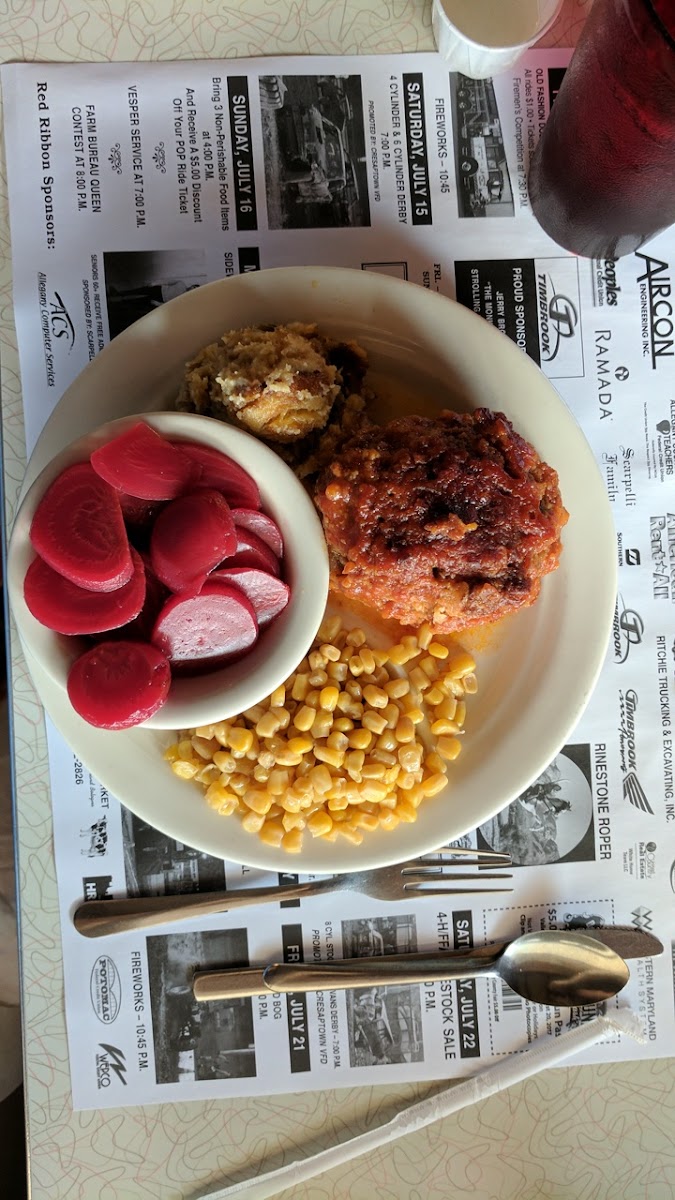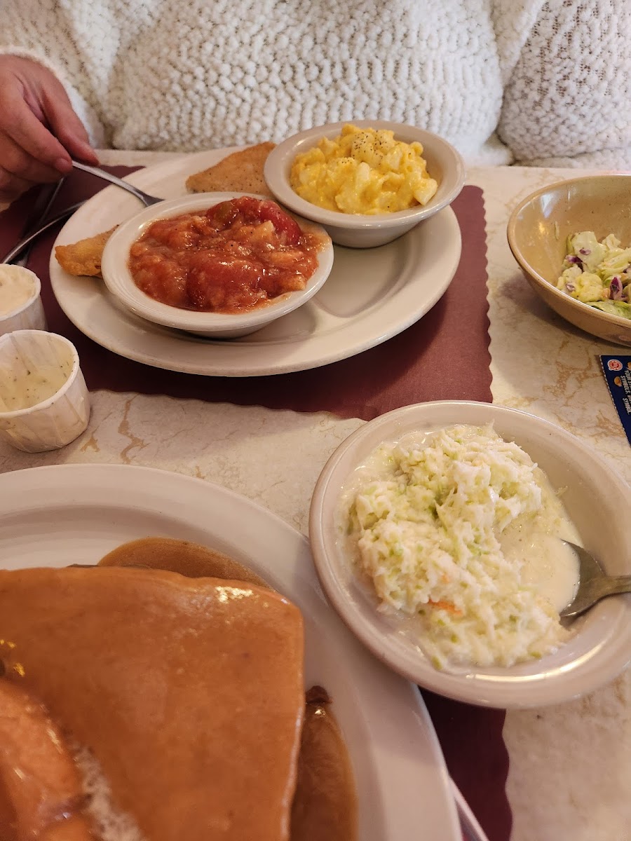 This is a nice little hometown no frills restaurant- diner. There were 8 of us that stoped in for dinner. They quickly assembled a table for us. Service was fast and friendly. Daily special was ribs or pork chops meals. That changes daily tho. We had a variety of dishes between everyone, no one had any complaints except a few things could have had a bit more seasoning that up the flavors. Bonus *Kids meals are free on Saturday with purchase of adult meal.